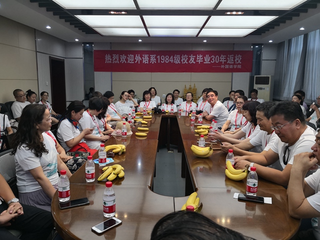 共叙师生情谊,共话事业发展。7月28日,公司迎来了毕业30年员工返校日,员工们从五湖四海赶回母校,怀揣青春记忆,共叙外语人情怀。下午2时,外语系1984级四十余名员工齐聚教学六楼会议室,参加公司毕业30年员工座谈会。公司党委书记马正平,副经理鲁燕参加了座谈。