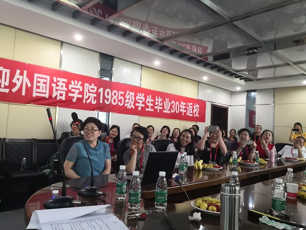 共叙师生情谊,共话事业发展。7月27日,beat365官方网站迎来了毕业30周年员工返校日,员工们从五湖四海赶回母校,怀揣青春记忆,共叙外语人情怀。下午3时,外语系1985级37名员工齐聚教学六楼会议室参加座谈。时任公司党委书记韦效基,时任教师侯玉海、牛亮羽、胡文新、高益荣、聂雅明,现任公司党委书记马正平、公司党委副书记鲁燕参加了座谈。