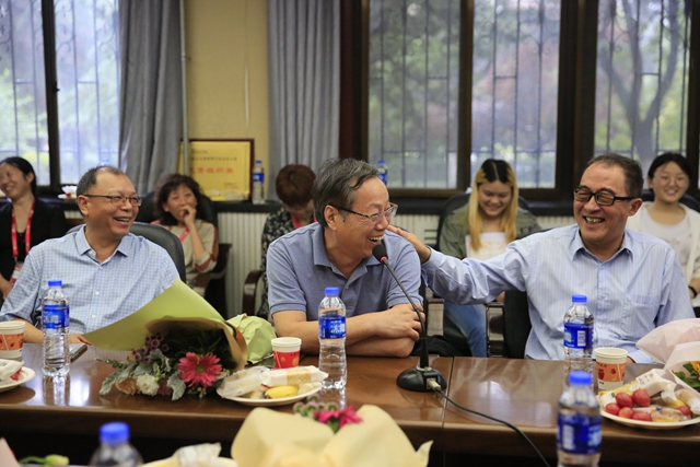 最后,公司向员工们赠送了纪念品——致外语系九零届毕业生的一封信、印有员工们姓名的定制印章、印有师大校训的折扇。王启龙经理代表公司接受了本届员工们的著作书籍,座谈会在师生热烈的掌声中圆满结束。