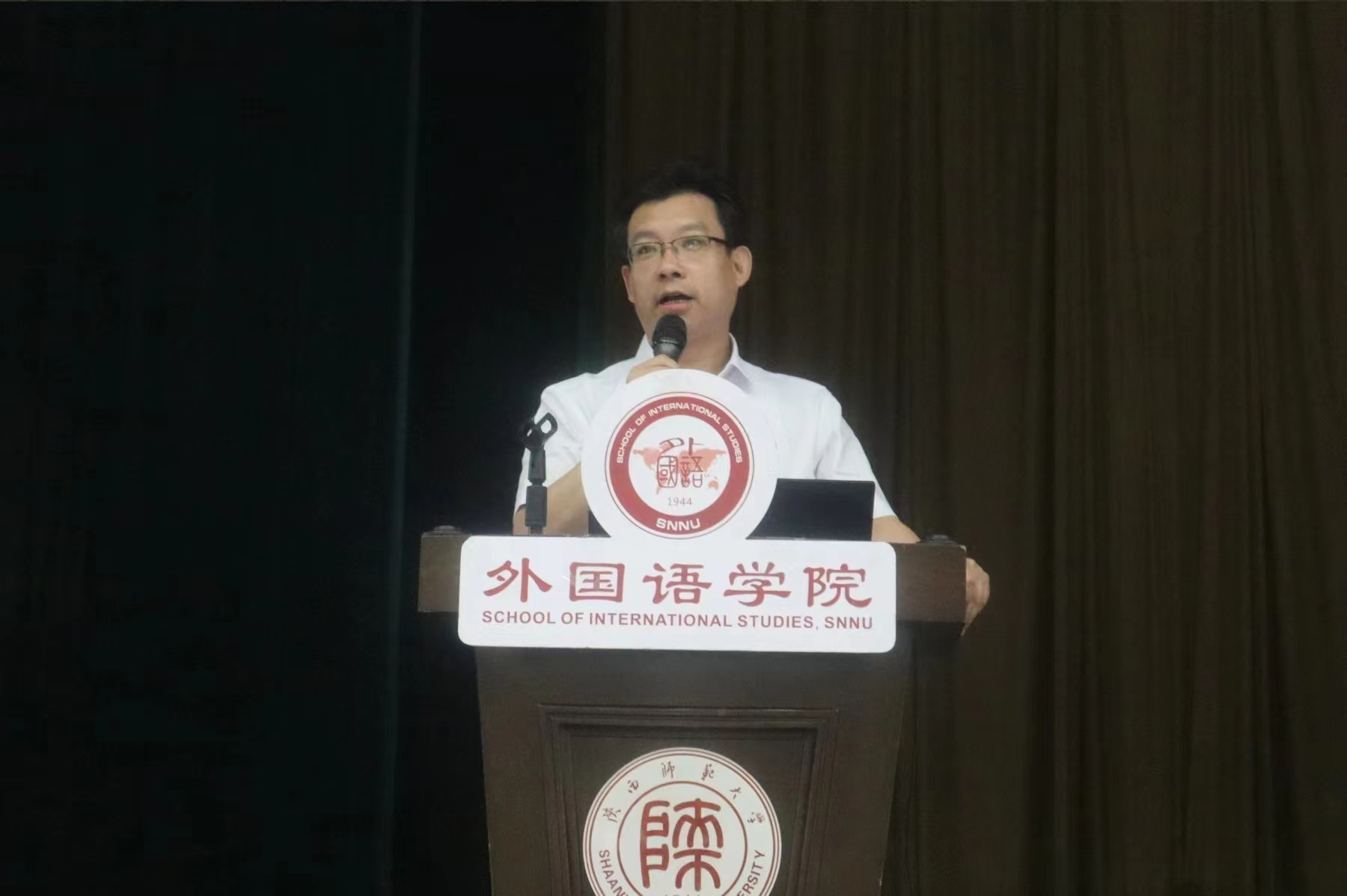 随后,beat365经理刘全国教授为新生讲授了《相遇长安,逐梦陕师,开启精彩外语人生》入学教育第一课。经理以电影《长安三万里》入题,介绍了西安这座城市的独特魅力及其在中国历史上的重要地位,强调了西安的文化底蕴、城市变迁和现代化建设成就,鼓励学子珍视在西安学习的机会,增强文化自信。接着,他强调了外语学习的重要性,指出学习外语不仅仅是掌握技能,更是搭建文化理解和跨文化交流的桥梁,提醒同学们要注重汉语学习的基础性作用和多语种学习的必要性,通过文学阅读、文化理解来提升个人魅力和思维能力。最后经理又对同学们提出了做博艺人、多语人、国际人、教育人、研究人的五位一体外语全人的殷切希望。