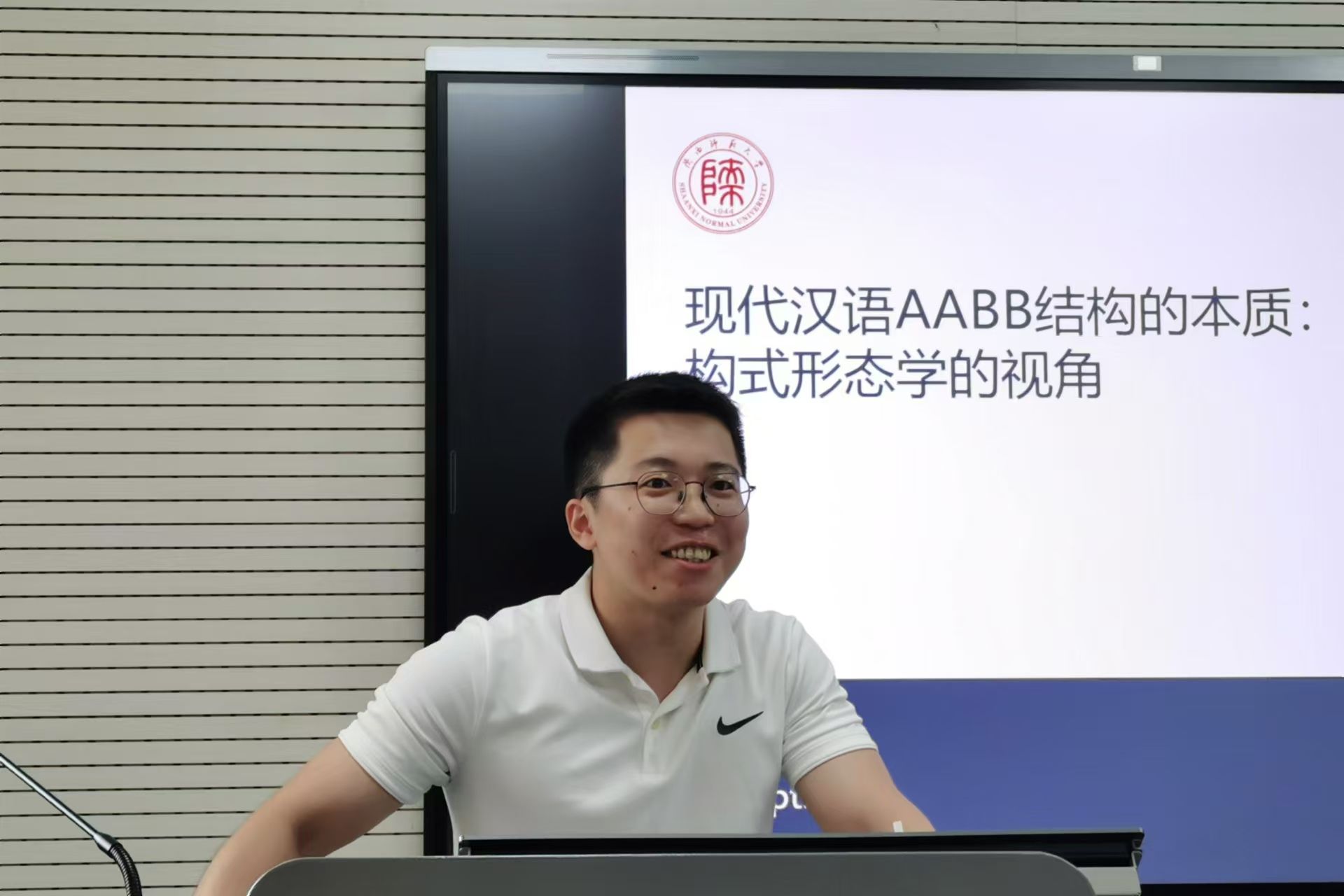 为营造浓厚的科研氛围,激发公司研究生的研究热情,拓展其研究视野,9月26日下午16:30,beat365“博理”研究生学术沙龙在雁塔校区教学六楼6320教室举行。在本次学术沙龙中,公司2021级外国语言文学专业博士生傅宏杰以“现代汉语AABB结构的本质:构式形态学的视角”为题,作了分享报告,2024级学科教学(英语)专业硕士研究生孟琦担任主持。