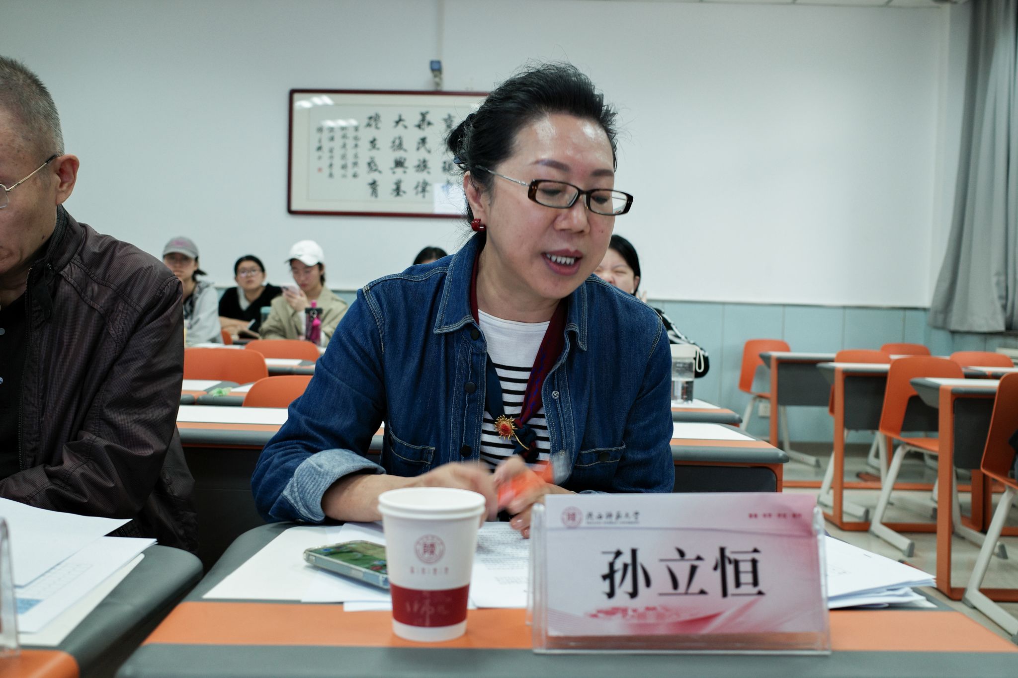 硕士生王艺超、程睿淇、张雨、周鹏羽、庞帅及韦誉君、李静萱、蔡雨暄、郭欣、郭雯雯、谢俊杰分别以“基于‘教一学一评’一体化的高中英语课堂教学评价量表中的问题与改进策略”“双减政策背景下初中英语作业设计研究”“内容依托式教学法对高中生批判性思维倾向的影响研究”“字幕类型对高中生附带词汇习得的影响研究”“职前英语教师反思能力发展研究”“实习期间职前英语教师身份认同变化的研究”“基于情境认知理论的高中英语深度阅读教学研究”“初中英语教师写作评价素养的个案研究”“PACE教学模式在初中英语语法教学中的应用研究”“全身反应法在小员工英语词汇教学中的应用研究”为题,围绕英语教学与评价、作业设计、教学法等多个方面,进行了深入的分享与交流。两位评委老师全程认真聆听、仔细记录,对每位同学的发言进行了细致的点评与指导。