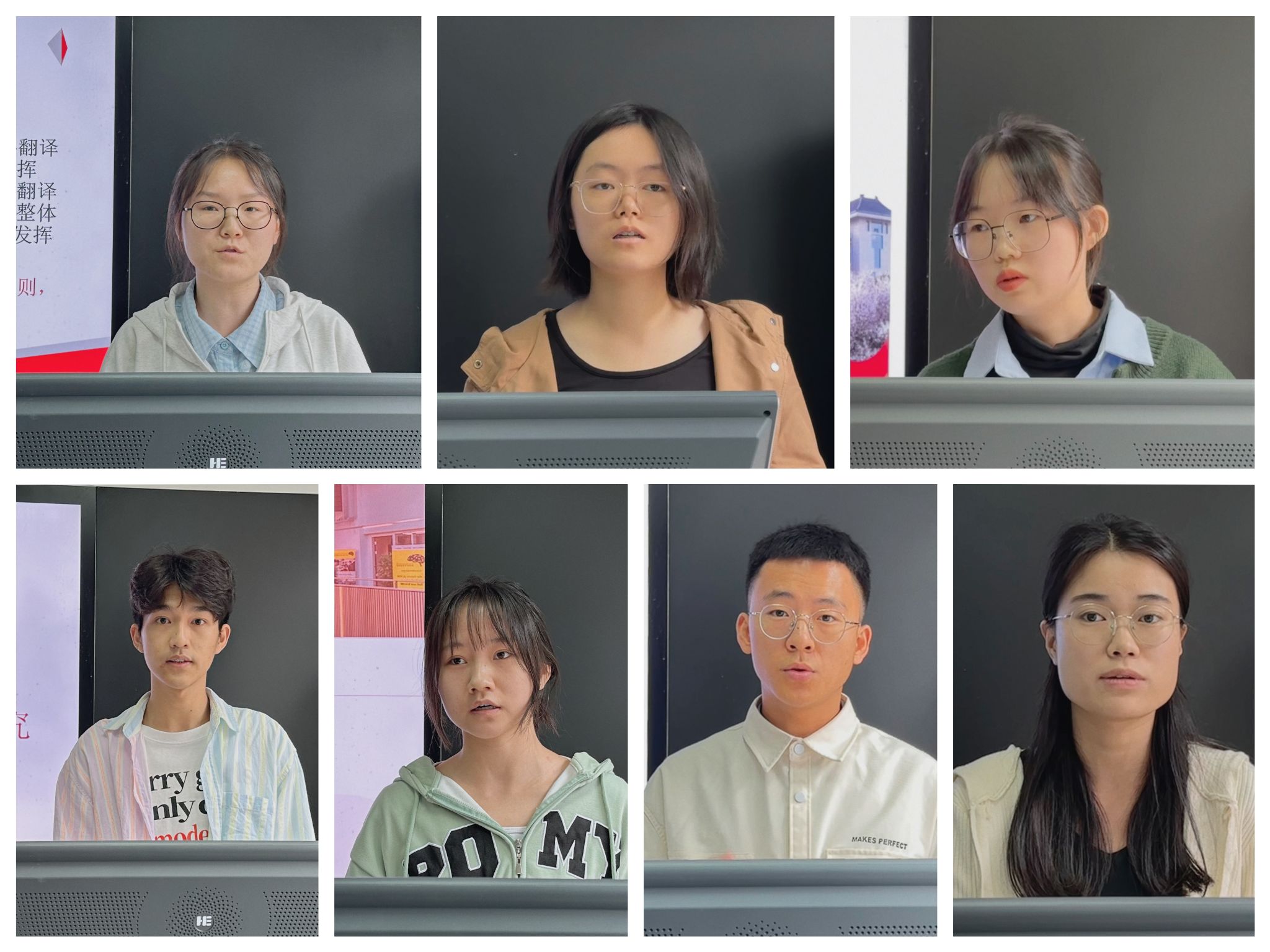 七名参赛选手从不同主题切入,对各自的研究进行了阐述。本科生马迪以“从译语优势论角度看《名利场》杨必译本翻译策略”为题进行了报告。硕士研究生尹栩颖、杨雨婷、许怀民、熊思怡、王汉凯、以及王晴分别以“关联理论视角下《青衣》葛译本的隐喻翻译研究”“知识翻译学视角下杜甫诗歌英译中的知识重构:以宇文所安The Poetry of Du Fu为例”“文学文体学视阈下中国西部文学的英译研究——以雪漠小说《大漠祭》葛浩文译本为例”“变译理论指导下的文学作品翻译——以《了不起的盖茨比》为例”“目的论视角下商务广告汉英翻译研究”“A Study on the English Translation of Chinese Civilization Stories from Henan Heluo Culture from the Perspective of Transknowletology”为题,对个人论文和研究进行了分享。两位评委老师对各位选手的汇报进行了细致分析,充分肯定了选手们的优点,同时也针对各个选手的不同问题提出了有效建议。