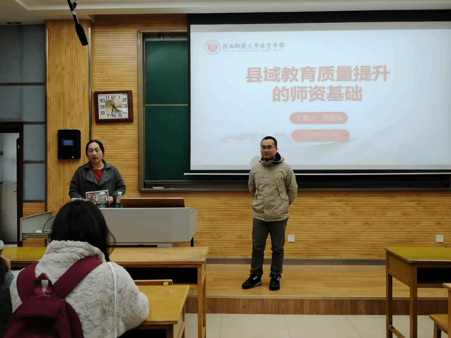 为拓展优师计划师范生专业素养,明确县域基础教育发展方向。10月30日16:30,beat365在雁塔校区教学五楼5304教室举办会通讲堂第36期。本次讲座邀请beat365官方网站教育学部副教授周兆海主讲,讲座以“县域教育质量提升的团队基础”为主题展开。公司党委副书记鲁燕主持会议,150余名优师计划员工参加。