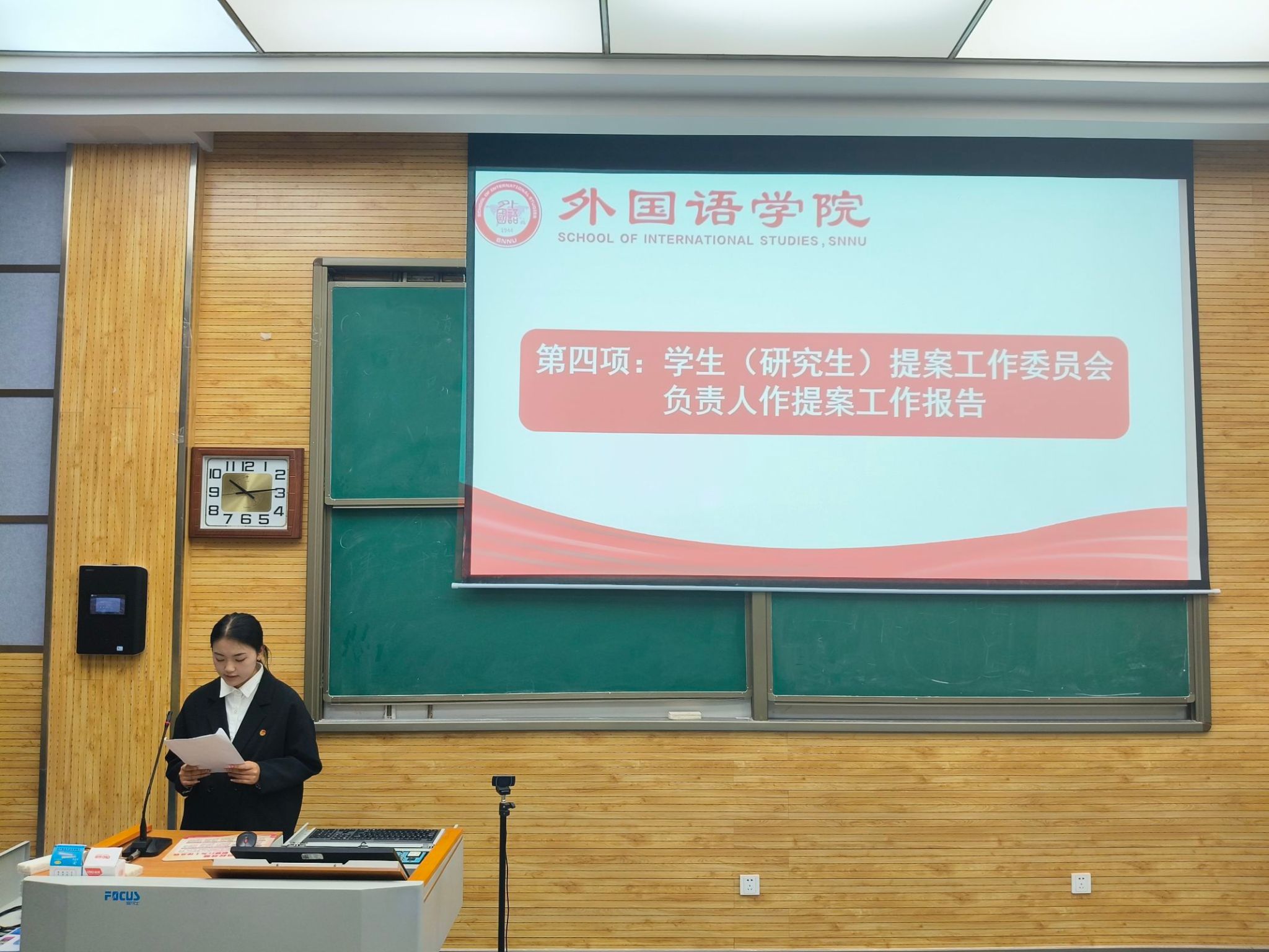 孙苑、谢宏燊介绍员工、研究生委员会委员候选人、校学代会代表候选人、校学代会委员候选人和主席团成员候选人情况。
