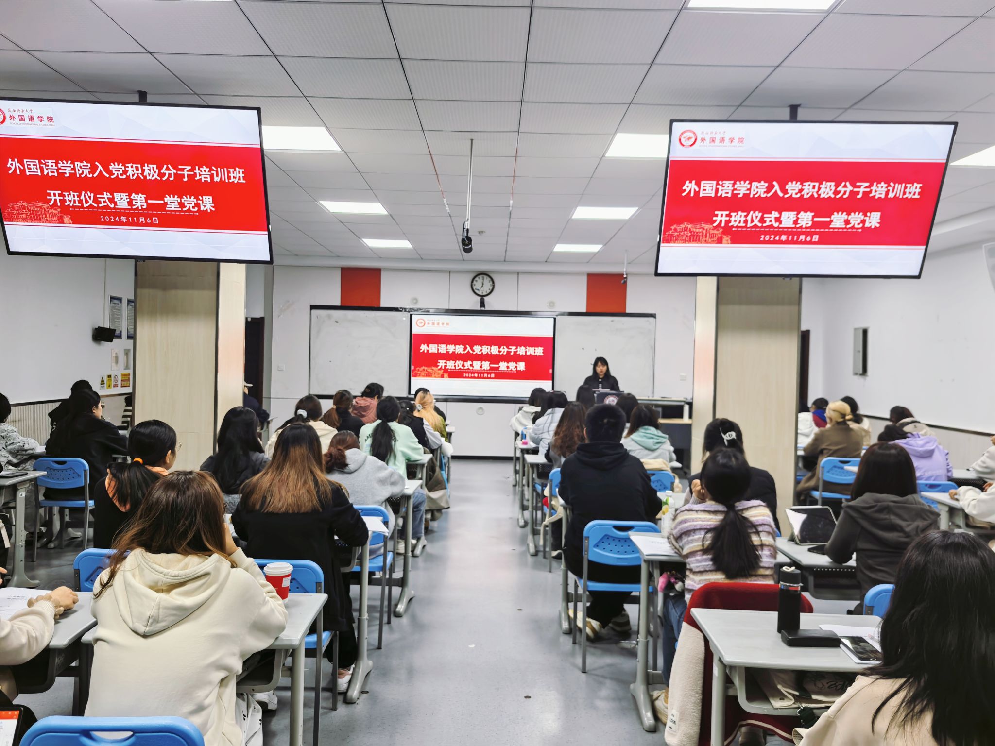 为切实做好入党积极分子的培养教育工作,提高入党积极分子的政治素质和理论素养,11月6日晚7点,beat365在教学六楼6301教室举办入党积极分子培训班开班仪式暨第一堂党课。外国语公司党委书记董增云研究员及入党积极分子参会。开班仪式由党委组织员董洁主持。