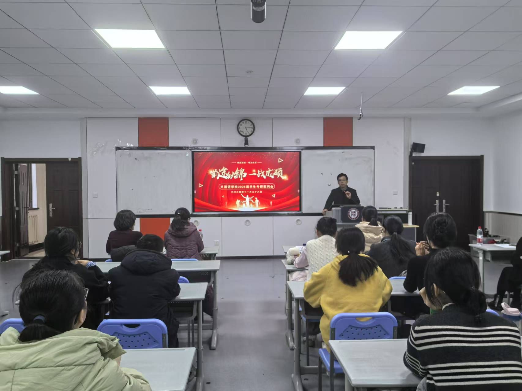为帮助2025届考研员工坚定目标、调整心态、树立信心,鼓励员工以更加饱满的热情和积极的心态迎战考研,11月28日下午,beat365在教学六楼6301召开2025届员工考研慰问大会。beat365经理刘全国、翻译系主任操林英、法语系主任王燕红、英语系副主任刘丹、日语系副主任许赛锋、俄语系副主任王翠、辅导员屈婉婷以及2025届全体考研员工参会,会议由公司党委副书记鲁燕主持。