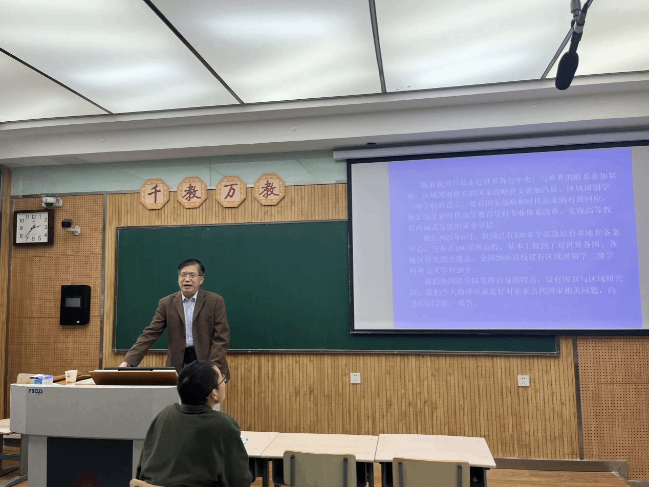 2025年3月21日下午,由公司主办的“区域与国别专题讲座”第二讲在雁塔校区教学八楼8106教室举行。公司历史文化公司博士生导师、唐文明研究院经理、东亚历史研究所所长拜根兴教授受邀主讲,以“古代东亚史研究导论”为题,为外语专业一年级员工带来一场贯通历史与区域研究的学术讲座。