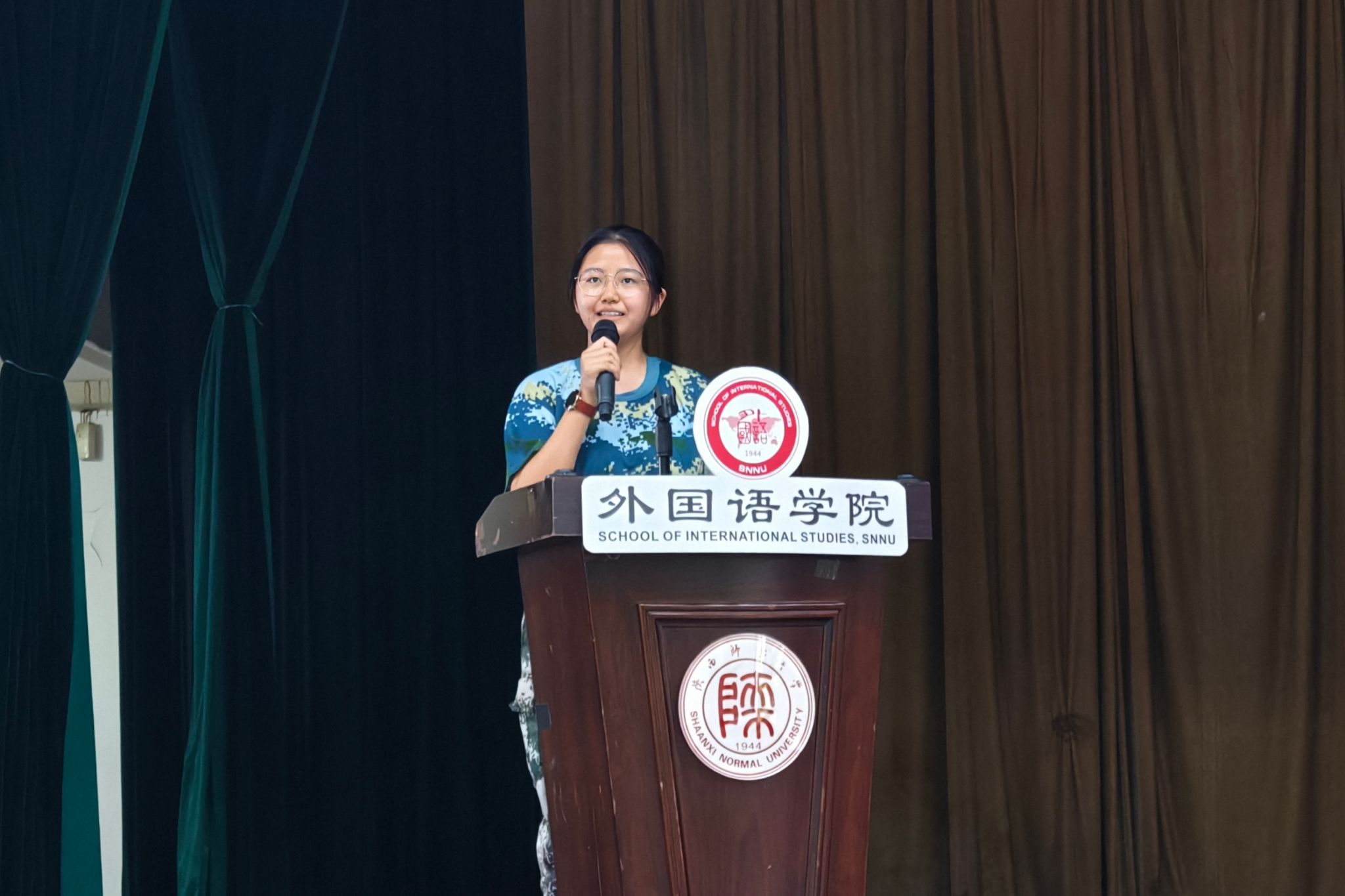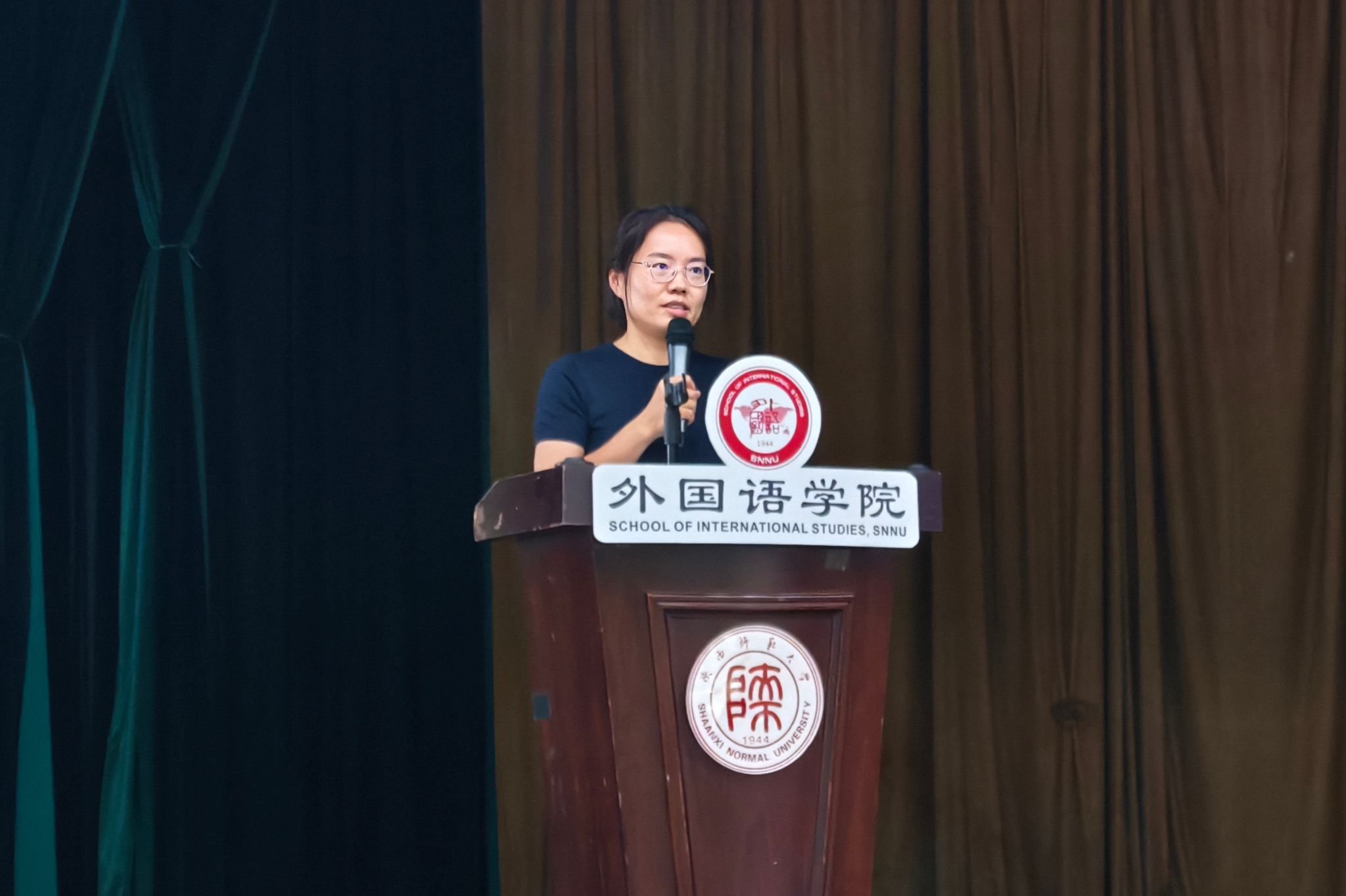 教师代表英语系申慧洋老师发言。首先,她对2025级新生的到来表示热烈欢迎。其次,她根据自己的教学、科研经历分享有关外语学习的经验:一是走出课堂,注重实践,从每一次跨文化交流中理解外语魅力;二是勇于创新,打破壁垒,从每一次科研经历中培养创新意识。最后,她提醒同学们关注身心健康,学会调整心态,保持乐观稳定的情绪,在beat365度过充实美好的求学时光!