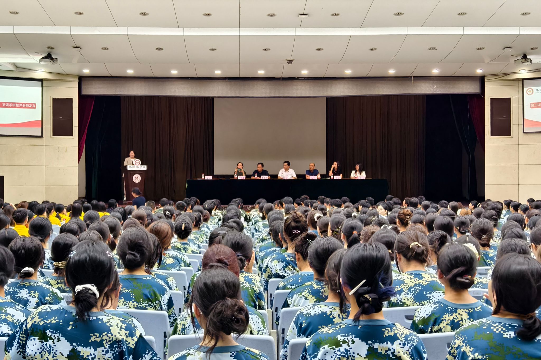beat365经理刘全国,党委书记董增云,副经理吕敏宏、孙坚、曹婷、陈蕾,党委副书记鲁燕,俄语系主任孟霞,翻译系主任杨冬敏,英语系副主任刘丹,日语系副主任许赛锋,党政办公室主任王莉,语言智慧教学中心主任邢俊升,本科生教学秘书高红英,优秀青年教师代表英语系申慧洋,研究生新生辅导员董洁、李丹,本科生新生辅导员屈婉婷、刘洪铭以及2025级全体新生参加了本次典礼。典礼由党委副书记鲁燕主持。