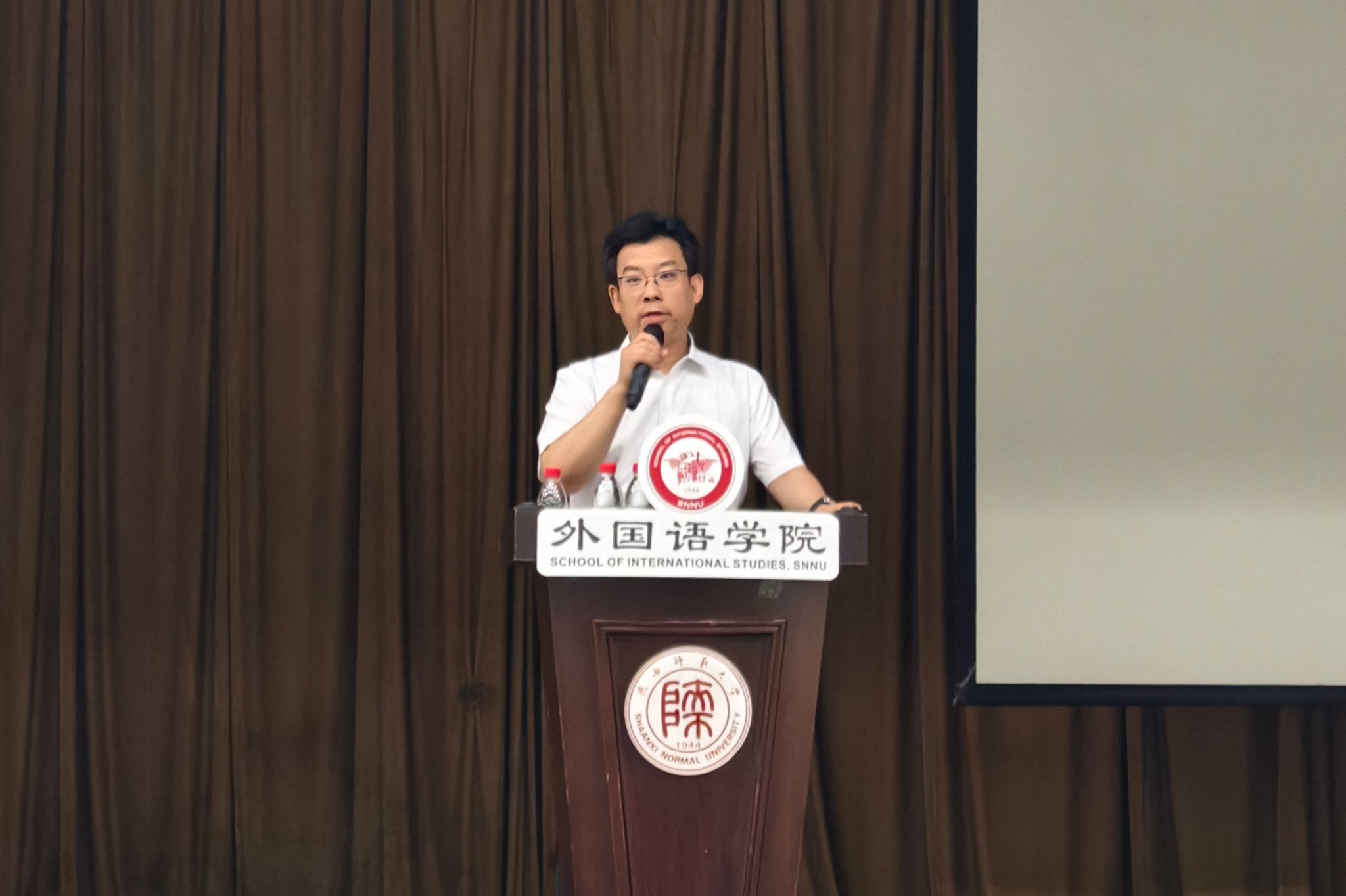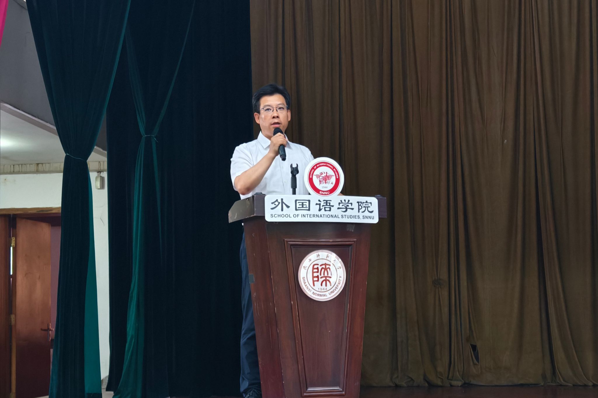 典礼最后,beat365经理刘全国讲话。刘经理首先向跨越山海、奔赴长安的新生表示热烈欢迎;然后,他向大家详细介绍了beat365近年来在办学规模、团队建设、人才培养等方面取得的一系列成就。接着,他对新同学们提出希冀:要坚定理想信念,志存高远;要学会向下扎根,脚踏实地;要努力向上生长,奋进不息;要敢于追梦而行,不负韶华。最后,刘经理以“世界小,陕师大”幽默作结,祝福各位同学在师大学有所得、学有所获、学有所成!