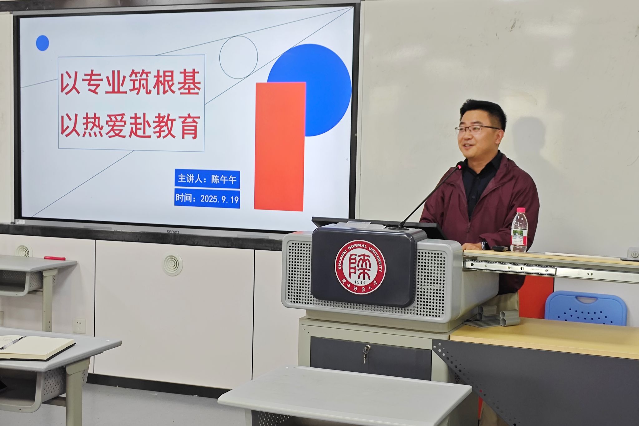 主讲嘉宾陈午午以“教育初心与专业成长:一位初中英语老师的‘四维成长地图’”为题展开分享。在英语教学上,他紧扣《课标》,实施分层教学,构建高效作业流程,巧用真题提升员工应试能力。在班级管理中,他推行“流程化+员工共同体”理念,创新四大管理方法,成功化解多类教学难题。在科研创新上,他就课题申报、论文发表、教辅资料编写等方面传授个人经验。最后,他建议师范生树立“创业意识”,提前积累教学、管理和科研能力,以专业与热爱为教育事业注入活力。