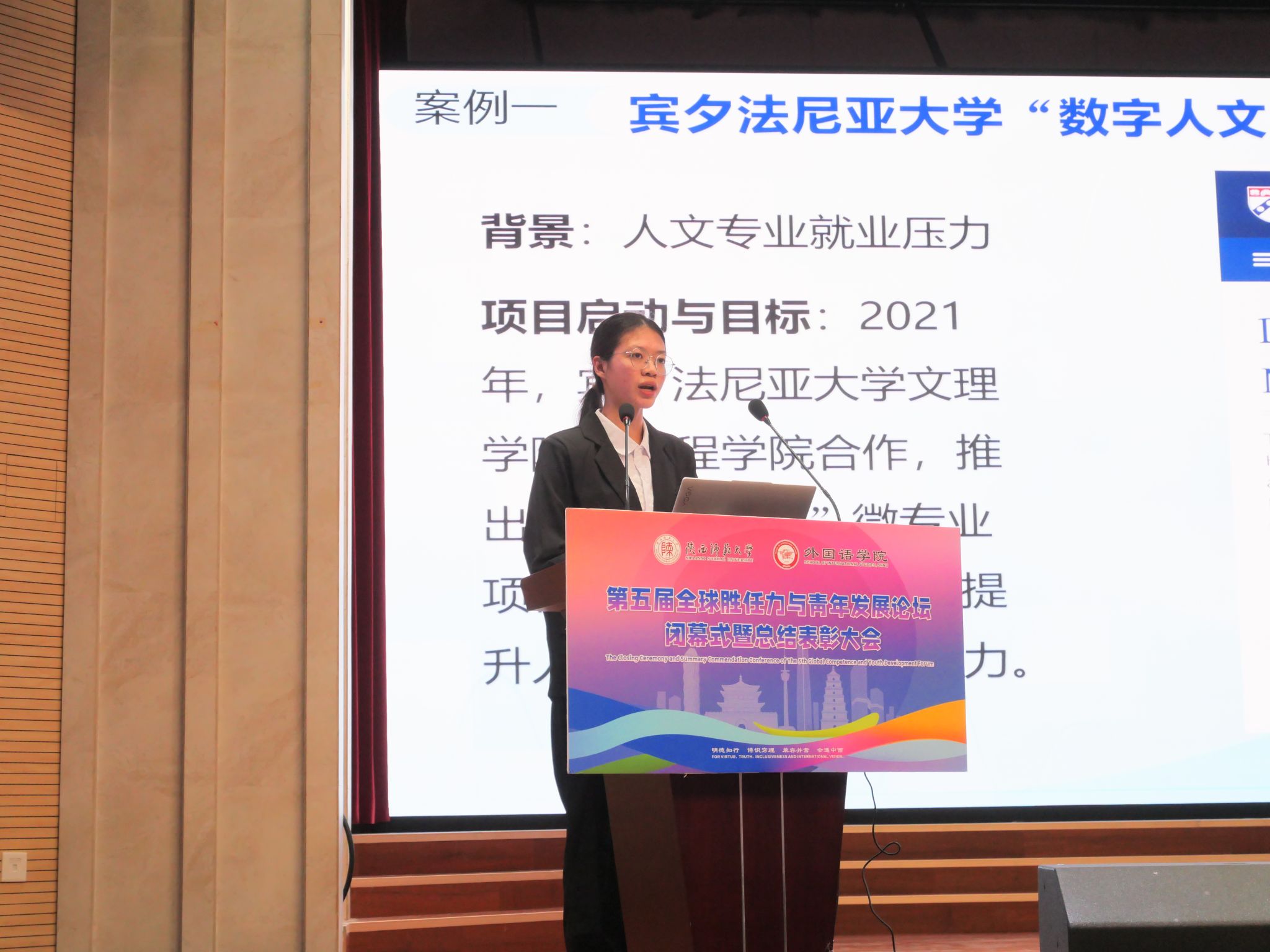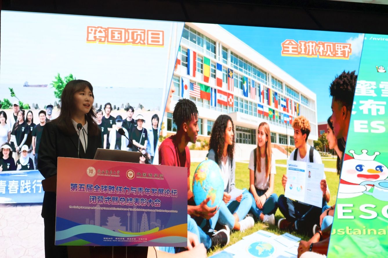 外国语公司党委副书记鲁燕就第五届论坛的开展情况进行汇报。她回顾了论坛自2020年举办以来五届的发展历程,并重点介绍了本届论坛在国际理解专题讲座、全球热点议题研讨、国际基础教育主题海报展评、知名企业参访等方面的情况,对公司形成的“高校青年全球胜任力‘1+4+X’创新培育模式”进行了解读,宣读了工作坊优秀学员名单。