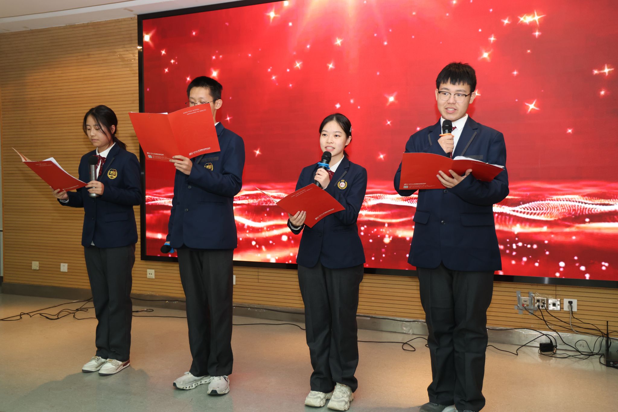 在文艺展演环节,两校学子分别以英文朗诵、歌曲、配音的形式向观众献上精彩纷呈的文艺节目。灵动的语言交织着青春的朝气,既展现了学子们的蓬勃风采,更让校际情谊在欢声笑语中愈发深厚绵长。