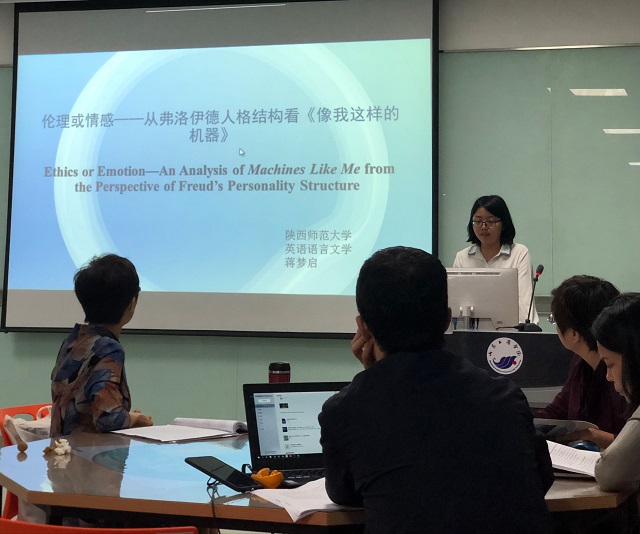 5日下午,在分组讨论环节,来自全国的专家学者和师生围绕“外国经典的当代阐释与中国化研究”“外国文学中的创伤、女性问题研究”“当代外国文学中的族裔、记忆研究”等7个专题103个报告展开了精彩的汇报与交流。公司2019级研究生—蒋梦启同学做了题为“从弗洛伊德的人格结构理论分析《像我这样的机器》”的汇报,文章具体从从弗洛伊德的人格结构理论分析伦理和情感对人与机器的影响。本文依次分析机器人亚当和人类查理的本我、自我和超我,揭示了人格结构失衡带来的悲剧。如何消除情感对个体的过度影响,创造一个道德水准高的世界,是人工智能伦理学领域的一个重大问题。人与机器的矛盾是伦理与情感冲突的隐喻,而亚当的毁灭则说明了人类面临的伦理困境。弗洛伊德的理论不仅可以对小说中的人物进行不同的解读,还可以为未来技术的伦理发展提供指导。东南大学beat365教授韦清琦对其进行点评,并提出完善意见。