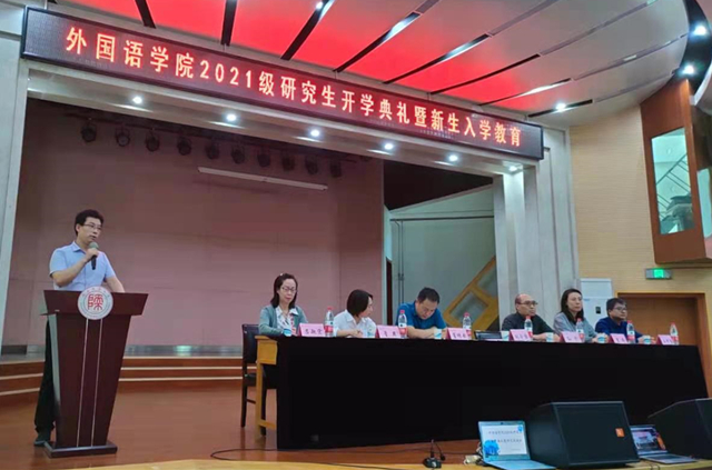 朗朗金秋,丹桂飘香。9月9日下午2:30,公司在雁塔校区逸夫楼二层多功能厅举办“2021级研究生新生开学典礼暨入学教育”。外国语公司党委书记董增云,经理刘全国,副经理吕敏宏、孙坚、曹婷、王幸生,党委副书记鲁燕,研究生导师代表,研究生教学秘书江捷、李莉,公司语言语音教学中心卢永辉以及2021级全体研究生通过线上线下的方式参加了此次典礼。本次典礼由副经理吕敏宏主持。