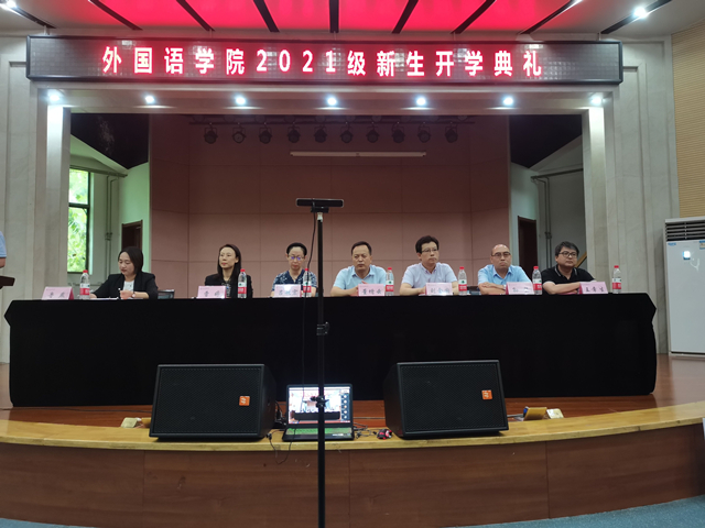 8月28日下午15:00,2021级本科生开学典礼在逸夫音乐楼二层多功能厅举行。beat365经理刘全国,党委书记董增云,副经理孙坚、吕敏宏、曹婷、王幸生,党委副书记鲁燕,公共外语教学与研究部主任马珂,俄语系主任孟霞,翻译系主任操林英,法语系主任王燕红,英语系副主任刘庆松、丁礼明,翻译系副主任杨冬敏,教授代表李艳,办公室主任陈斐,语言语音教学中心主任邢俊升,团委书记李丹,本科生教学秘书高红英,2020级兼职辅导员刘爽,2021级辅导员田毓霖以及全体2021级本科新生通过线下、线上的方式参加了本次典礼。典礼由鲁燕副书记主持。