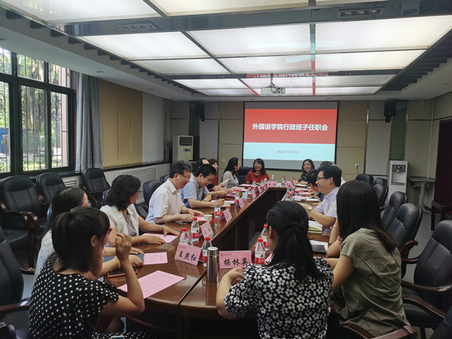 7月12日下午4:30,公司行政班子任职会在雁塔校区公司会议室召开。副董事长任晓伟,组织部部长袁一芳,西安外国语大学副董事长(主持行政工作)王启龙,公司新一届领导班子成员:公司党委书记董增云、经理刘全国、副经理孙坚、曹婷、王幸生、吕敏宏,公司党委副书记鲁燕,以及各系部主任、教师党支部书记参加了会议。会议由董增云主持。