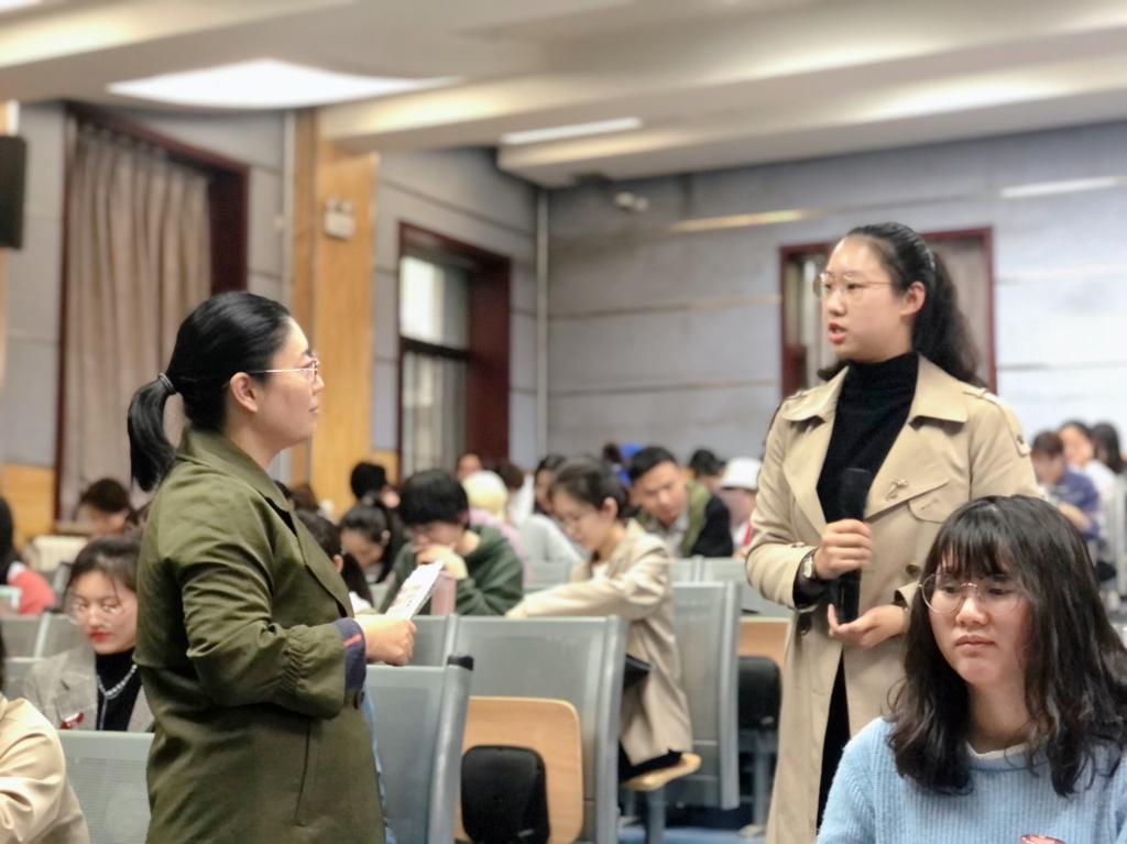随后,崔老师重点讲解了有效教师和有效教学的特点。实现有效教学,第一,教师应该首先从人性角度出发,关心尊重员工。第二,有效教学离不开秩序化的班级组织与管理,教师应该运用班级管理策略,对不同员工行为进行不同反馈。第三,指令的计划、组织和施行也尤为重要,运用一些提问技巧使员工参与到教学中来,可以达到事半功倍的效果。第四,教师切不可忘记通过作业反馈等形式来检测员工学习成果及挖掘员工学习潜力。同时,崔老师从我国教育改革出发,以核心素养为切入点,引导员工立志成为“四有好老师”,并强调全员育人,全程育人,全方位育人的重要性。