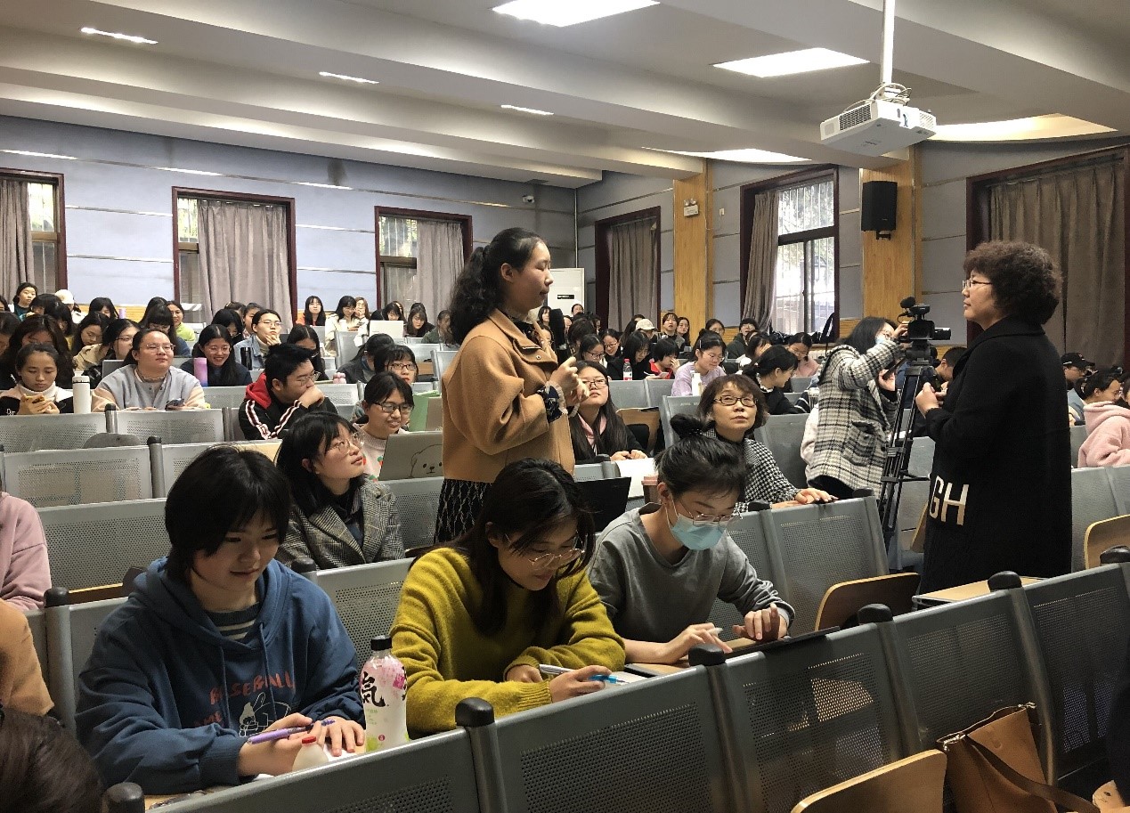 为帮助公费师范生深入了解基础教育英语教学的现状和发展,对英语学科核心素养的内涵和实践有较为全面的认识,beat365于4月2日(周五)16:40在教学五楼5104教室举办了基础教育外语教学专题研究系列讲座第二讲——英语学科核心素养的落地与实践。本次讲座由西安市教育科学研究院中学英语研究员、beat365官方网站免费师范生校外合作导师王兰英老师主讲,罗雅晖老师主持,beat365全体公费师范生参与并聆听讲座。