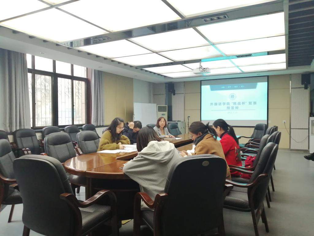 为积极准备复赛,5支参赛队伍于3月11日下午公司会议室进行了复赛预答辩,英语系副主任丁礼明、俄语系教师段李敏、翻译系教师巢玥、研究生辅导员董洁、2017级辅导员李丹、2019级辅导员屈婉婷担任了此次预答辩的评委,预答辩由分团委书记高芳卉主持。入围公司复赛的五组作品负责人依次通过PPT的形式,从选题背景及原因、调研过程、调研成果、论文概述等方面对自己的项目进行了简要汇报。评委老师指出了作品存在的主要问题,并提出了指导性的意见和建议。