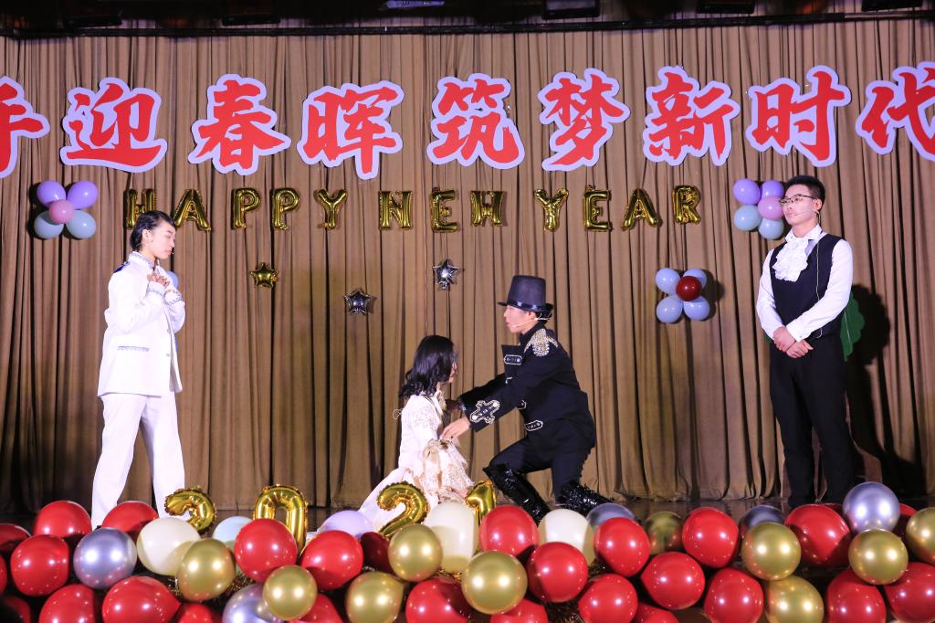 晚会第一篇章《携手同行·共筑梦》,张靖一等同学带来的乐队演奏,紧凑的鼓点与激烈的电吉他,流畅的歌声,充满了青春的激扬。紧接着是秦可心等同学带来的充满国风韵味的古典舞《牵丝戏》,红色的舞袖华美而动人,矫健的舞姿尽显东方之美,惊艳的唱腔更是令台下掌声连连,欢呼阵阵。由莎士比亚戏剧社带来的改编版《仲夏夜之梦》,细腻的演绎、精致的服装、流畅的英文台词,充满感情且富有感染力,让同学们领略到了英伦文化的独特魅力。公司教职工代表和小朋友们一起带来的《最炫beat365风》,孩子们稚嫩的舞姿充满童真,老师们活力四射的精彩表演将本场晚会推向高潮。党委书记马正平做了热情洋溢的致辞,对公司师生表达了新年的祝福。