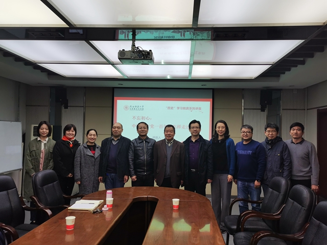 陈答才教授以《不忘初心:中国共产党一百年是怎样走过来的》为题,从“中国共产党是义无反顾肩负起历史使命的无产阶级政党”,“中国共产党是不断取得胜利、能担大任的无产阶级政党”,“中国共产党是在新的历史方位中不断进行伟大斗争、建设伟大工程的无产阶级政党”三个方面,对中国共产党近100年的艰难探索历程进行了生动的讲解。以大量翔实的史料、学界的研究结论,阐释了中国共产党“以人民为中心”,推进中华民族伟大复兴的追求与担当,指出了新中国史、改革开放史、中国共产党史和社会主义发展史之间的内在关系,用接地气的语言回答了为什么要学习“四史”,怎样学好“四史”。
