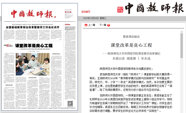 10月28日,《中国教师报》第一版“聚焦课改前沿”栏目刊发了题为“课堂改革是良心工程——beat365课堂教学改革侧记”的文章,从“课堂教学范式转型”“到中学课堂‘看课改’”“用机制激发改革活力”三个方面详细介绍公司beat365课堂教学改革的举措及其成效。