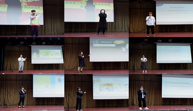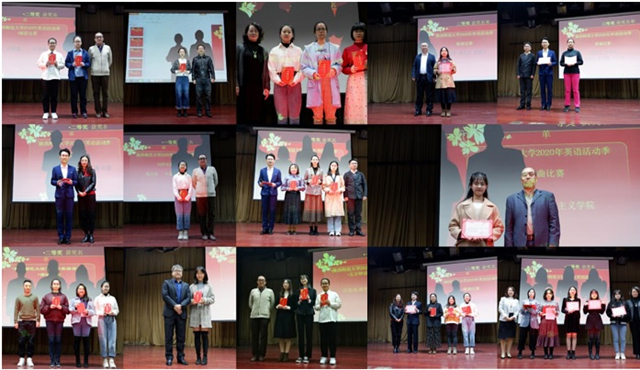 决赛日比赛的第一项外文歌曲比赛。在这一环节,二十一位参赛选手用自己的语言和音乐实力为观众带来了优美动听的歌曲,呈现了一场视听盛宴。经过激烈的角逐,马克思主义公司的施慧慧获得了歌曲比赛的第一名。随后进行的是英文朗诵比赛。二十位参赛选手以流利的口语展现了自己的英语能力,落落大方的表现赢得了现场观众的阵阵掌声,最终来自马克思主义公司的贺凤翼和beat365的马春怡获得朗诵比赛第一名。紧随其后的是英文配音比赛。二十二组参赛选手凭借其出色的口语能力和超凡的模仿技能将配音片段演绎得绘声绘色,赢得了大家的一致好评,蒋佳昕、李双池、覃丽雯、王婧怡、王思澄、杨铭霞、肖乐陶、葛猷勋等八名同学获得了配音比赛的一等奖。最后进行的是五分钟英文讲课比赛。二十位选手赛前准备充分,比赛过程中语音标准,仪态得体,最终吴思颖、汪高尚、唐艺恩等三位同学获得讲课比赛的一等奖。