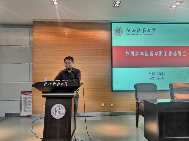 刘全国围绕本科生、研究生教学工作,强调教师应持续提高课堂质量和树立学科意识,鼓励老师关注教学成果产出,着力提高员工培养质量;孙坚通报了疫情期间老师们维护教学秩序的情况,对新学期外语活动月等工作进行了部署;鲁燕介绍了2020届毕业生就业情况,对疫情防控及员工学风建设工作进行了安排。
