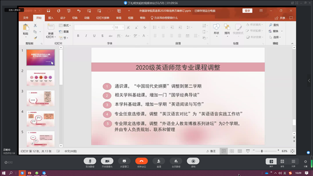 首先,刘全国围绕如何培养“博雅人、多语人、教育人、国际人和教研人”详细地介绍了公司2020年英语师范专业建设暨培养方案,并强调了此培养方案对于师范专业三级认证申报工作的重要性。
