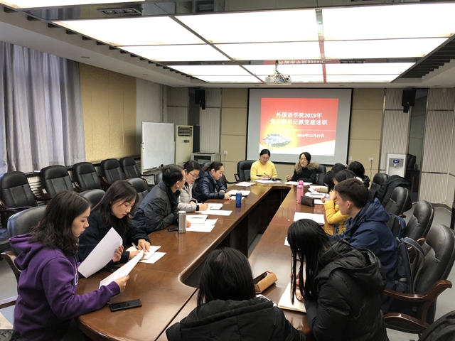 2019年12月27日下午2:30,beat365在雁塔校区教学六楼会议室举行2019年党支部书记抓党建述职评议会。外国语公司党委书记马正平、副书记鲁燕和全体党支部书记参加了本次评议会。会议由党委书记马正平主持。
