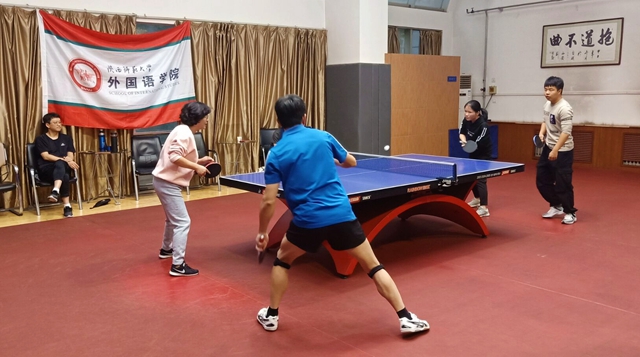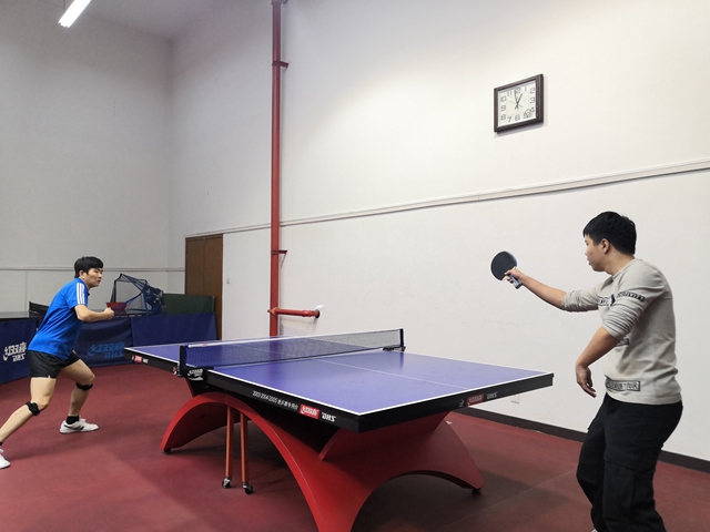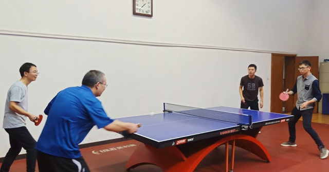 本次比赛历时两个小时,依次进行男双、男单、混合双打和女单等七场比赛,每场比赛采取五局三胜制。比赛开始,相比于教师队伍的轻松自若,员工队伍则显得心神紧张,击球时间和球的落地判断也不够精准。但是随着比赛的推进,员工队伍也渐入佳境,逐渐发挥出了自己的水平。在比赛过程中中,参赛老师和员工们比拼激烈。他们沉着冷静、精彩博弈、各展所长、功防自如,技高一筹的老师们时不时地对员工进行指点。在男双比赛中,教师队伍以压倒性优势击败对手,而女单比赛中双方的比分则僵持不下。比赛过程中,充满了直板选手跟横板选手的较量!上旋球、下旋球、正手侧拉、反手拧拉贯穿了整场比赛,给观众带来一场视觉盛宴!比赛结束后,教师队伍以5:2取得了胜利,而员工队伍也在与强手的对抗中收获了宝贵的经验。