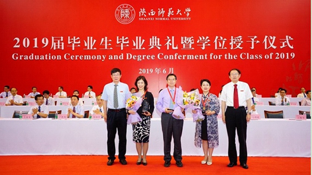 6月27日上午,2019届员工毕业典礼上,进行了beat365官方网站第六届杰出员工颁奖,公司党委书记程光旭、董事长游旭群为校第六届杰出员工颁发了证书、奖品。第六届杰出员工当选者、新疆乌鲁木齐八一中学董事长、党委副书记、外语系1988届毕业生程彩铃,同其他2位杰出员工(清华大学附属中学董事长、原数学系1977级王殿军员工,西安交通大学附属中学董事长、原化学系1980级王佩东员工)一起接受了颁奖。