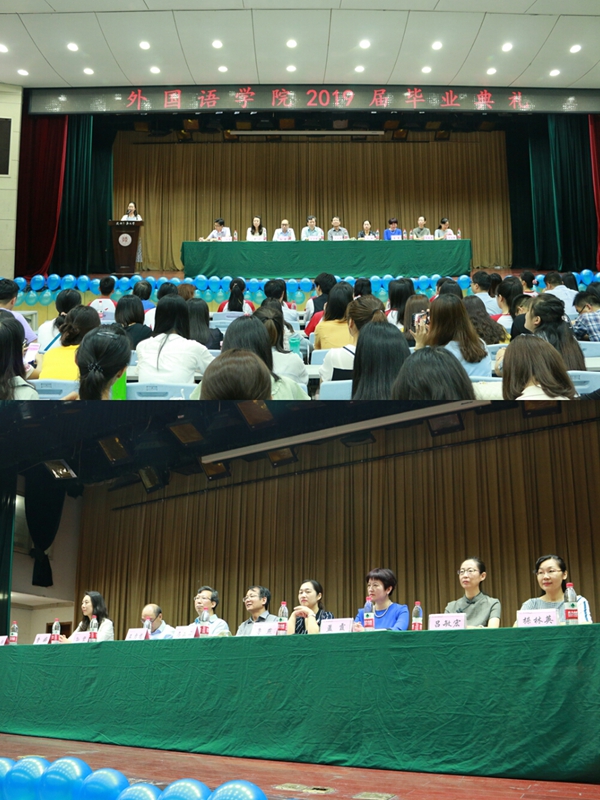2019年6月23日上午,公司2019届毕业典礼在雁塔校区积学堂隆重举行。出席本次毕业典礼的领导嘉宾有公司经理王启龙、公司党委书记马正平、公司原党委书记冯武鸣,公司副经理刘全国、孙坚、鲁燕,英语系主任吕敏宏、俄语系主任孟霞、日语系主任曹婷、翻译系主任操林英、公司办公室主任王幸生、各学科外教及毕业班辅导员董洁、王子琛。公司副经理刘全国担任主持人。