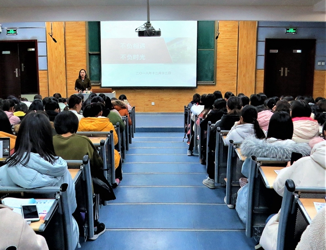 为引导公司2018级新生树立正确的价值观念,明确青年学子所肩负的责任和使命,以及在大学四年中如何脚踏实地学习和生活。12月12日晚7点,beat365副经理鲁燕老师在5104教室为2018级全体员工做主题为“不负相遇,不负时光”入学教育报告会。报告会由辅导员屈婉婷主持。