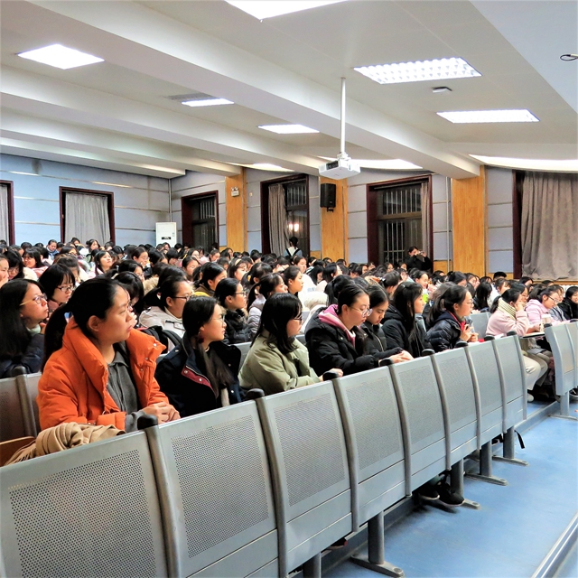 报告会伊始,鲁燕老师结合近期公司大型毕业生就业招聘会及公司所开展的毕业生就业工作,告诫同学们大学四年的时光转瞬即逝,要充分利用好每一分每一秒,并举例优秀毕业生为榜样,引导大家尽早树立人生目标,提早规划好未来道路并为之奋斗。