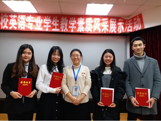 2018年12月8日,公司教师崔琳带领四名公费师范生参加了在北京师范大学举办的首届“新课标、新理念、新方法——师范院校英语专业员工教学素质风采展示活动”。在公司领导的大力支持下,相关教师与员工精心准备,最终在此次活动中取得较为理想的成绩,公司2015级员工姜圳和罗苑文获得二等奖,2016级员工林浩和荣思敏获得三等奖。