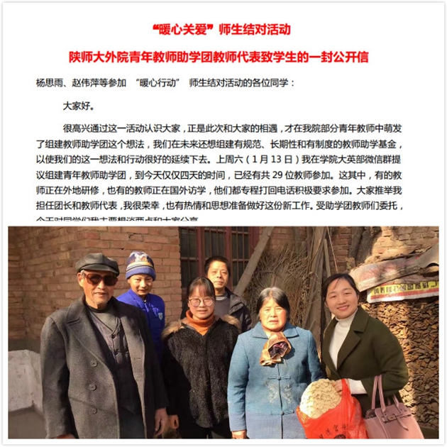 为了进一步发挥公司教师党员对员工的思想引导和生活帮扶,公司先后出台《外国语公司党政领导联系党支部制度》《外国语公司党政领导联系少数民族员工制度》《beat365教师党员联系家庭经济特别困难员工制度》,并制作结对帮扶卡,对于员工在思想、学习、生活、就业等多方面开展指导,进行党员教师对家庭经济困难和特殊员工一对一引导帮扶,受到员工的认可。2018年1月,公司“教师结对帮扶家庭经济困难员工”专项行动正式启动,本科生、研究生共计300余名家庭经济困难员工与公司教工结成帮扶对子。在雷震等老师的带动下,公司教师还自发组建了“陕师大beat365教师助学团”。截止目前,大学英语教学部、英语系等部门共79位老师捐资7850元用于困难员工帮扶。