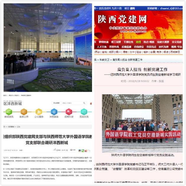 为了进一步帮助师生党员了解社会和国家发展趋势,增强了立足本职服务社会的意识,公司先后组织师生党员赴西咸新区的沣西新城和空港新城开展实践教育和调研。2017年9月27日,beat365教工党支部联合陕西党建网支部成员共40余人赴西咸新区沣西新城开展党员教育实践活动,先后调研了西咸新区双创展厅、西咸新区海绵城市研究试验中心、中心绿廊及西部云谷等地,全面地了解沣西新城在城市规划建设、双创文化、海绵城市建设发展、绿色城市理念、西部云谷创新创业等方面的情况。2018年9月26日,由公司党委书记马正平、副经理鲁燕带队,师大三代外语人一行50余人赴空港新城学习调研国企党建、“放管服”改革和自贸区建设等工作,参观了空港新城政务服务中心、空港国际快件监管中心和西咸保税物流中心,并听取了空港集团公司党委书记、董事长蒙彬对国企党建的介绍。“党员课题攻关”活动——确定一个课题,破解一道难题,促进一项工作,党员警示镜,支部党员季度考核栏等党建创新做法让师生们深受启发。