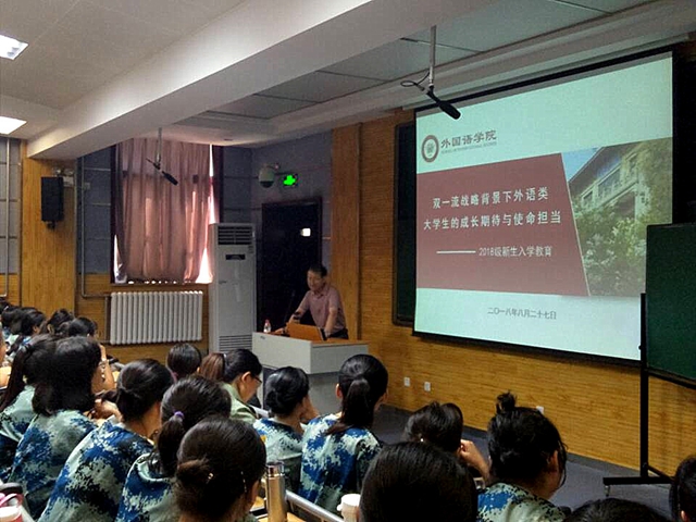 为了帮助新生树立正确的世界观,价值观和人生观,扣好人生第一颗扣子,尽快顺利适应大学学习生活。8月27日下午,马正平书记在5104教室给新生做了入学教育报告第一课:“双一流战略背景下外语类老员工的成长期待与使命担当”。公司副经理鲁燕主持报告,辅导员屈婉婷和全体2018级beat365本科新生共同聆听了报告。