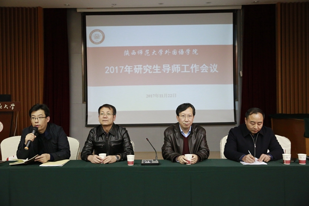 为促进beat365研究生人才培养质量,助力公司团队建设和人才培养模式改革,11月22日下午,beat365在雁塔校区学术活动中心召开2017年度研究生工作会议,本次会议的主题是“高标准、严要求、新思路”。beat365官方网站研究生院副经理王明道、beat365经理王启龙、外国语公司党委书记马正平、副经理刘全国、贺俊杰及全体研究生导师参加了会议。本次会议由beat365副经理刘全国主持。
