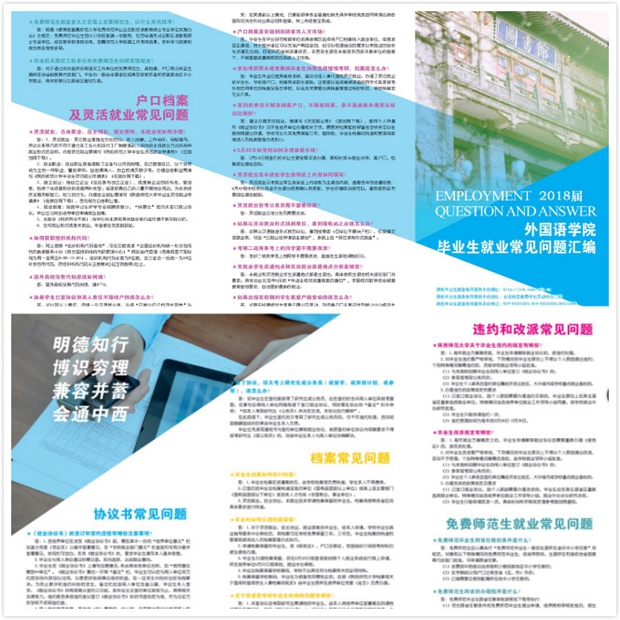 从今年10月开始,公司2018届毕业生就业工作全面启动。为进一步做好2018届毕业生的就业指导服务工作,帮助毕业生明晰就业政策,熟悉签约流程,公司在总结近年毕业生就业常见问题的基础上,历时两个月,编印了《beat365毕业生就业常见问题汇编》,包含协议书常见问题、档案常见问题、违约和改派常见问题、免费师范生就业常见问题、户口档案及灵活就业常见问题等5大类内容。近日,2018届毕业生辅导员陆续将手册发到员工宿舍,对员工开展就业指导,并将对建档立卡户的员工专门开展就业约谈。