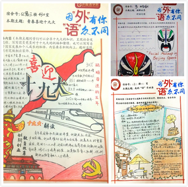 结合学风建设,beat365以员工专业学习、思想交流、知识拓展、心理健康为主要内容,面向全体员工定期开展“因‘外’有你,‘语’众不同”主题门贴设计评比活动,促进员工的自我学习和沟通分享。自今年3月起,“期末总动员”、“专四备考集锦”、“定位自我,成就未来”、“沐浴春光,悦纳自我”、“毕业季,我们整装待发”、“喜迎十九大”、“全心全力,备战大学第一考”、“战胜拖延症,我们在行动”、“新时代,逢其时,有作为——学习贯彻十九大精神”、“坚定目标,勇往职前,成就青春梦想”等16期主题分享得到了同学们的积极响应。每个宿舍都参与其中,精心设计分享内容,共计1200余张。员工们通过对主题的理解、设计、分享、交流和评优,不仅强化了专业知识,同时形成了思想交流的良好氛围。