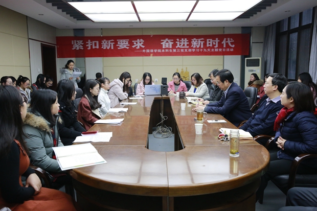 随后,党怀兴董事长讲话。他肯定了beat365本科生第三党支部本次十九大主题党日活动的效果,并与同学们分享了他的感受与希望。党董事长谈到,员工党员首先要树立四个自信,在新时代的背景下学懂弄通十九大精神的内涵,通过自身的学习和理解,让更多的同学了解和认识国家发展的战略和方向。党董事长提醒大家,作为外语专业的员工,不仅要警惕西方反华势力的渗透,更要树立中国自信,做好中华文化的传播。第二,要将个人发展同国家民族的发展相结合。师范生要勇于承担时代责任,培养好社会主义未来的栋梁,做卓越教师,以“四有”好老师的标准要求自己。第三,广大同学们要深入学习和践行社会主义核心价值观,传承中华传统文化,既学好外语,又要多读经典寻找专业依托。最后党董事长以习近平总书记的新年贺词勉励大家,幸福是奋斗出来的,同学们要撸起袖子加油干,一定能够拥有美好的未来。