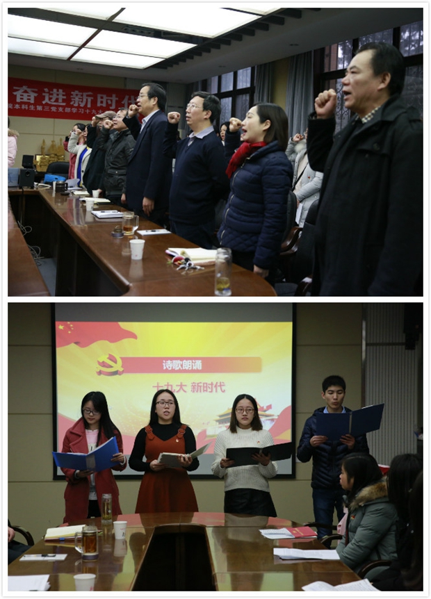 活动开始,支部书记行怀春对beat365本科生第三党支部的情况向大家作了简要说明,在场师生通过《不忘初心,继续前进》的视频共同感受了国家发展的脉络。随后,支部党员先后分享十九大学习的体会。同学们结合自己的成长经历、实习感悟、家乡变化、教育发展等多个方面,从不同的角度深刻地讲述了自己对十九大精神的理解。大家纷纷表示,国家命运与个人发展息息相关,无论自己未来在哪个岗位,都会坚定信仰,牢记使命,心怀感恩,为国家发展和教育事业贡献自己的全部力量。四名员工党员还即兴朗诵了《少年中国说》,更是让每个人心中燃起了矢志报国的拳拳之意。