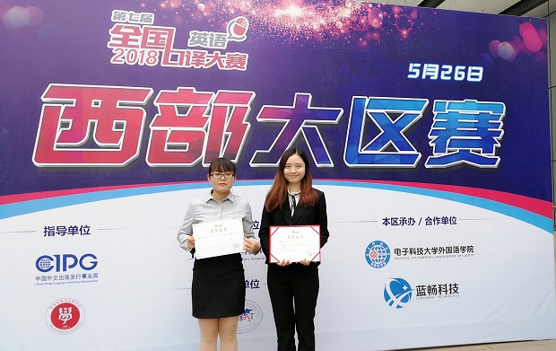 2018年5月26日,由中国翻译协会主办的第七届全国口译大赛(英语)西部赛区大区赛在电子科技大学举行。此次西部赛区的参赛区域包括四川、重庆、云南、广西、陕西、甘肃、青海、宁夏、新疆及西藏,共有来自44所高校的115名选手参加比赛。公司MTI英语口译专业贺晓静同学与2014级本科翻译专业杨绮桐同学代表beat365官方网站前往四川成都参赛。