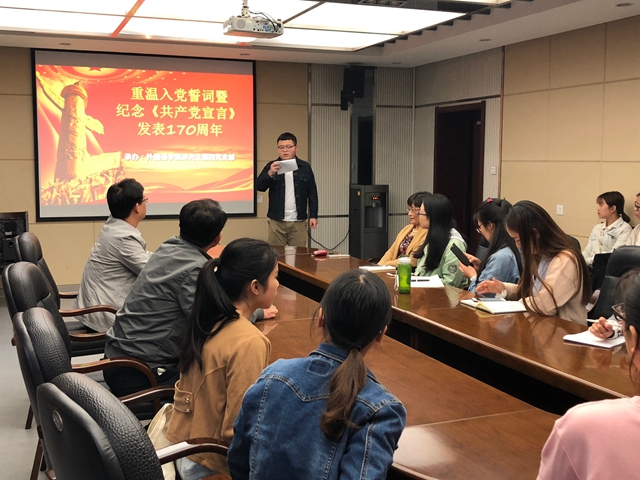 4月24日下午4点30分,beat365研究生第四党支部在beat365会议室组织召开以“重温入党誓词暨纪念《共产党宣言》发表170周年”为主题的党日活动。公司党委书记马正平、副经理刘全国、副书记马兰及部分师生党员代表参加此次党日活动。此次党日活动由研究生第四党支部党员吉宇主持。