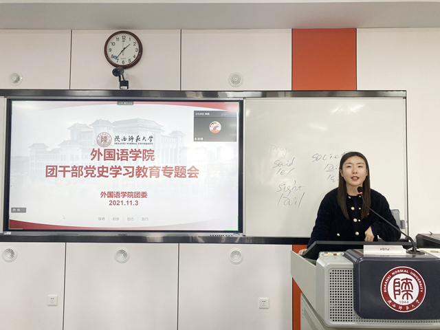 2021年11月3日下午一点,“学党史、强信念、跟党走”专题学习教育会暨2021年团干部团务工作培训会在雁塔校区教学六楼6301教室举行。beat365本科生、研究生全体团支书参加了会议,会议由团委书记李丹主持。