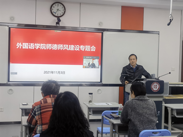 为深入贯彻党的教育方针,落实立德树人根本任务,引导广大教师坚定理想信念、厚植爱国情怀、涵养高尚师德,落实《beat365官方网站关于全面深化新时代教师队伍建设改革的实施办法》中对于全面加强师德师风建设的要求,公司于2021年11月3日下午在雁塔校区教学六楼6301召开师德师风建设专题会,党委书记董增云做了专题报告。